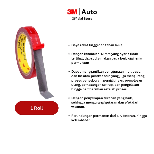 3M VHB 12x450mm 4900 (Double Tape). Cocok digunakan untuk kebutuhan otomotif, elektronik, interior, maupun industri karena mampu menggantikan fungsi sekrup, paku, atau lem cair.
