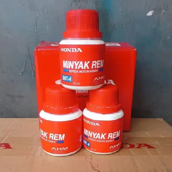AHM Minyak Rem DOT-4 50ml. Dengan titik didih tinggi, minyak rem ini mampu menjaga performa rem tetap optimal, responsif, dan aman dalam berbagai kondisi jalan maupun suhu.