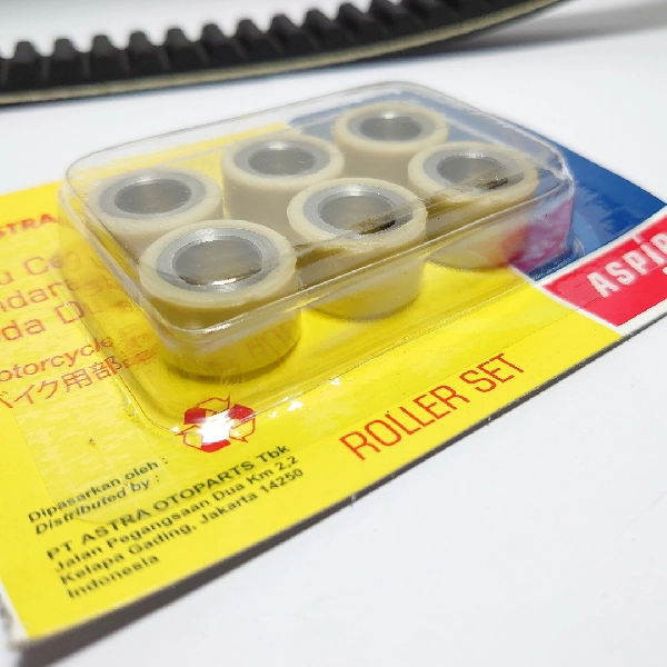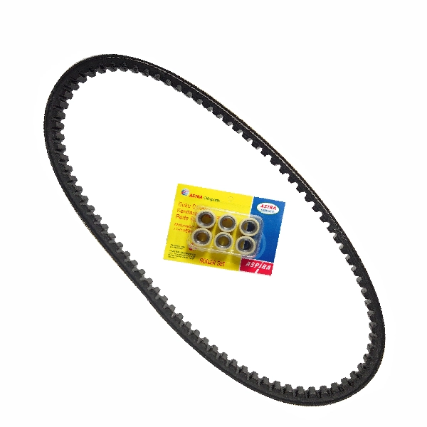 ASPIRA Vbelt +Roller Vario KVB. Paket ini terdiri dari 1 pcs V-Belt dan 6 pcs Roller, dirancang untuk menjaga sistem transmisi tetap lancar, tarikan enteng, dan konsumsi bahan bakar tetap efisien. Kualitasnya setara OEM, cocok untuk pengguna harian yang ingin menjaga performa motor tetap optimal.