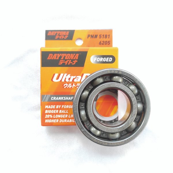 DAYTONA Laher Bearing 6205. Dirancang dengan material baja kuat dan presisi, bearing ini mampu menahan panas serta beban berat, memberikan putaran yang halus, stabil, dan awet digunakan untuk jangka panjang.