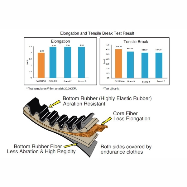 DAYTONA Vbelt Vario ESP 150 5042 (Gerigi Luar Dalam). V-belt ini memberikan performa transmisi yang halus dan responsif, meningkatkan efisiensi akselerasi sekaligus menjaga ketahanan dalam pemakaian harian maupun jarak jauh. Cocok untuk pengendara yang menginginkan kestabilan dan kenyamanan optimal.