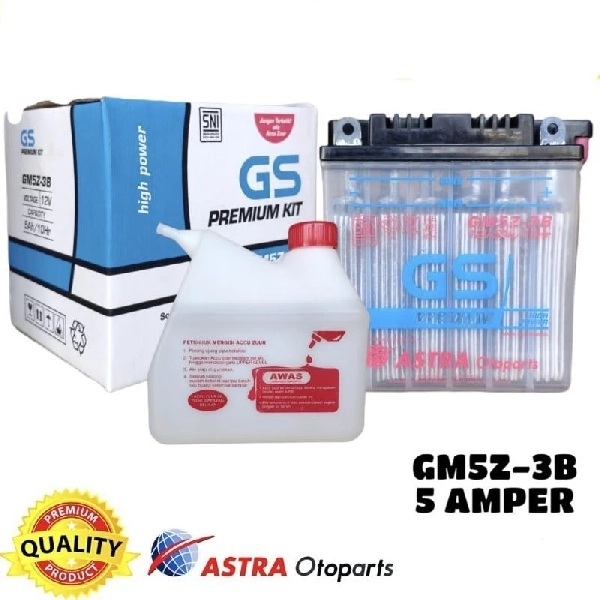 GS Astra Aki GM5Z-3B Basah. Diproduksi oleh GS Astra dengan standar kualitas tinggi, sehingga terjamin awet dan handal.