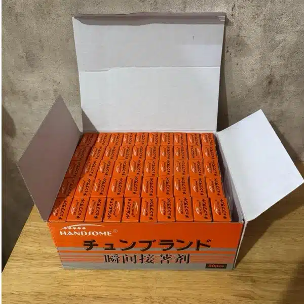 HANDSOME Lem Korea. Dengan formula cepat kering, lem ini menempelkan bahan seperti kayu, kertas, plastik, kulit, dan karet dengan mudah dan tahan lama.