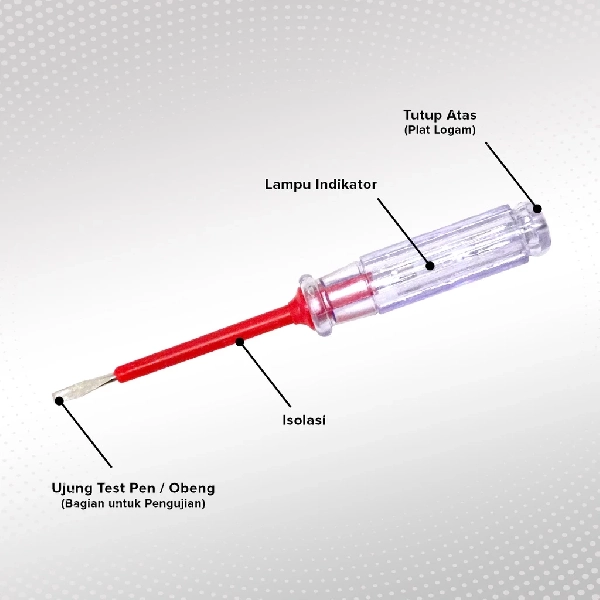 KENMMASTER Tespen Obeng 5106. Dengan desain yang ergonomis dan mudah digunakan, tespen ini menjadi pilihan tepat untuk kebutuhan instalasi listrik rumah tangga maupun perbengkelan.