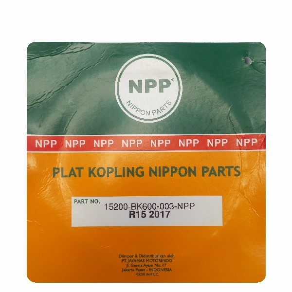NPP Clutch adalah kampas kopling motor yang berfungsi menyalurkan dan memutus tenaga mesin ke transmisi secara halus dan stabil. Dirancang menggunakan material gesek berkualitas dengan daya cengkeram optimal, kampas kopling ini mampu memberikan perpindahan tenaga yang responsif tanpa selip berlebihan. Cocok digunakan sebagai pengganti kampas kopling standar untuk menjaga performa mesin tetap maksimal.
