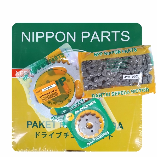 NPP Gear Set Grand Legenda 428-100L L4T/36T dikembangkan khusus untuk motor bebek Honda Grand dan Legenda, gear set ini memberikan perpindahan tenaga yang halus, tarikan responsif, dan daya tahan maksimal untuk mendukung aktivitas harian, termasuk penggunaan intensif seperti ojek online atau perjalanan luar kota.