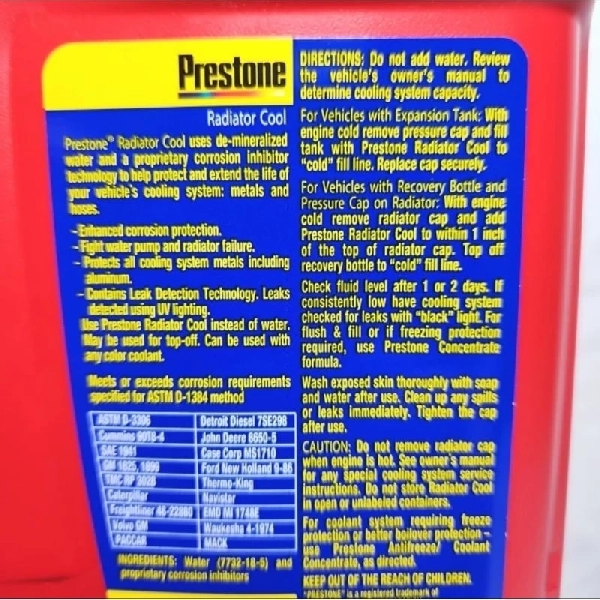 PRESTONE Air Radiator Coolant 1L (Merah). Memberikan performa pendinginan yang konsisten dan mencegah overheating pada kondisi ekstrem.