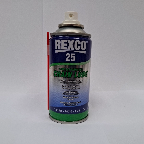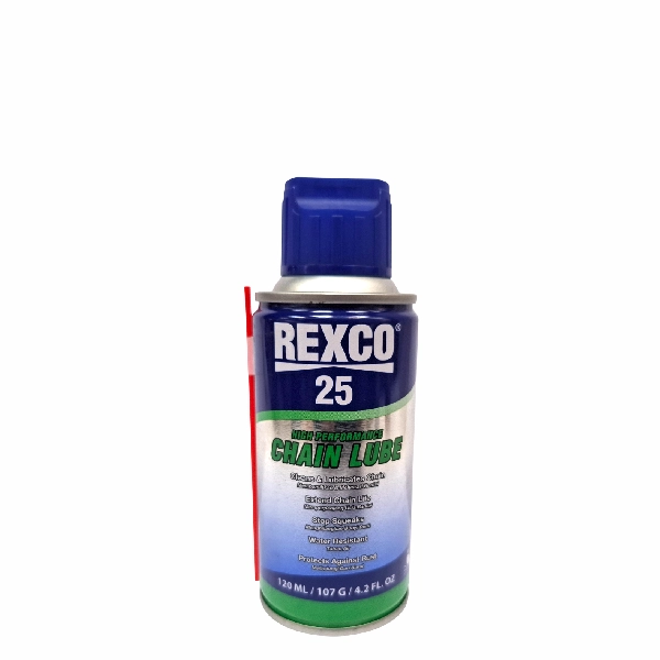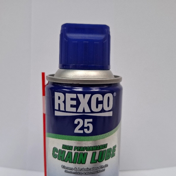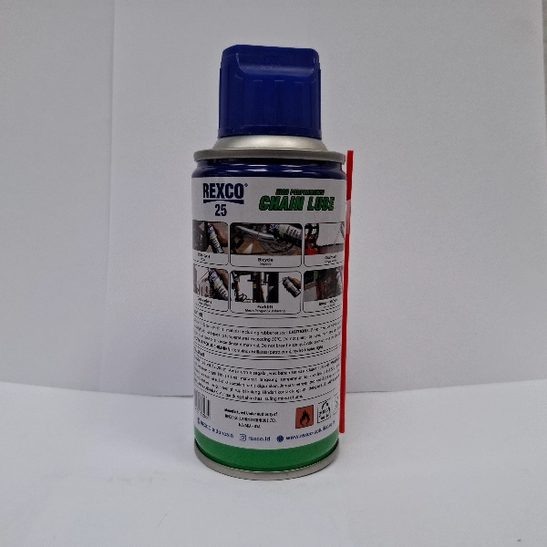 REXCO 25 Chainlube Pelumas Rantai 120ml. Dengan kemasan botol 120ml, pelumas ini sangat praktis digunakan untuk perawatan rutin rantai motor harian maupun motor sport.