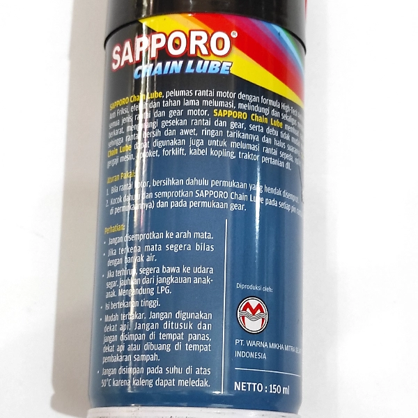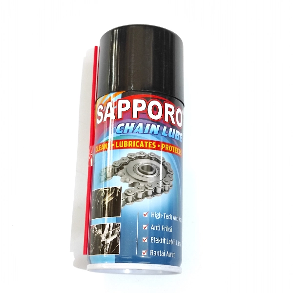 SAPPORO Chainlube 150ml. Chainlube ini mampu menjaga rantai tetap halus, memperpanjang usia pakai, serta meningkatkan performa berkendara.
