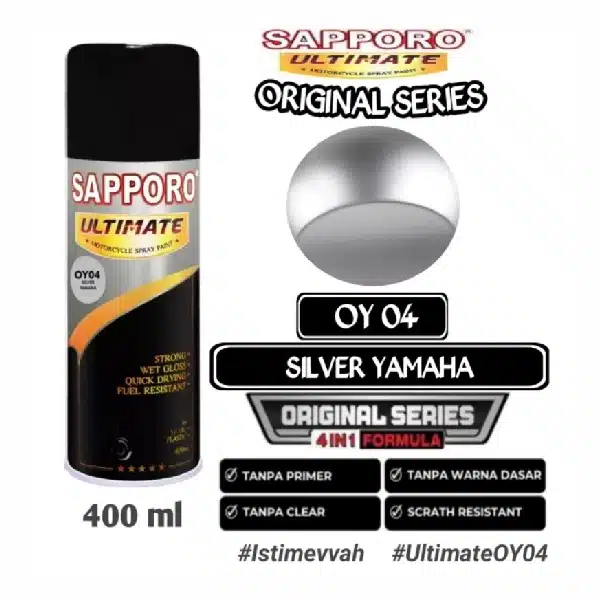 SAPPORO Ultimate adalah cat semprot berkualitas tinggi yang dirancang untuk memberikan hasil pengecatan yang halus, merata, serta memiliki daya rekat kuat pada berbagai jenis permukaan. Dengan formula modern dan pigmen warna premium, Sapporo menjadi pilihan favorit untuk kebutuhan pengecatan harian maupun proyek modifikasi karena mampu menghasilkan tampilan yang profesional tanpa membutuhkan peralatan khusus.