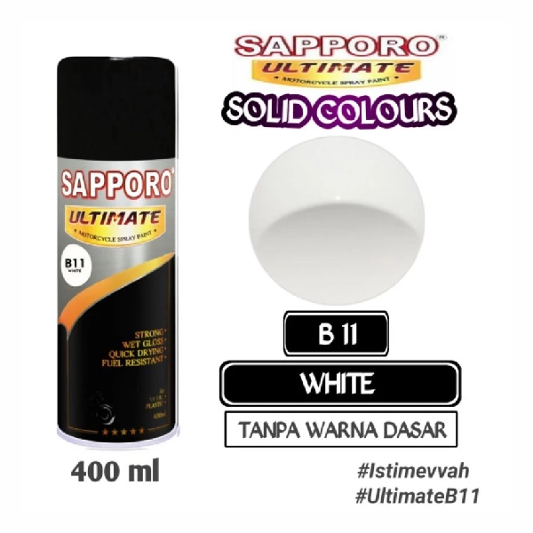 SAPPORO Ultimate adalah cat semprot berkualitas tinggi yang dirancang untuk memberikan hasil pengecatan yang halus, merata, serta memiliki daya rekat kuat pada berbagai jenis permukaan. Dengan formula modern dan pigmen warna premium, Sapporo menjadi pilihan favorit untuk kebutuhan pengecatan harian maupun proyek modifikasi karena mampu menghasilkan tampilan yang profesional tanpa membutuhkan peralatan khusus.