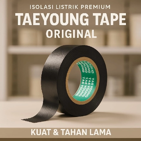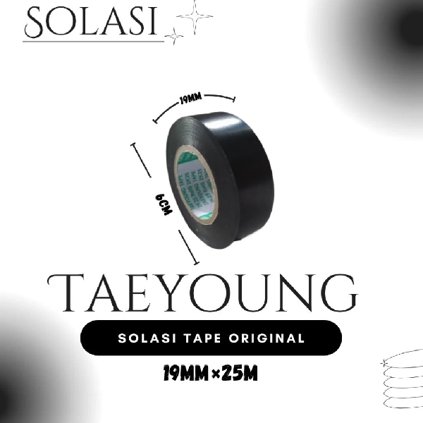TAEYOUNG Solasi Listrik (3/4 x 25m). Dengan ukuran lebar 3/4 inci dan panjang 25 meter, solasi ini sangat praktis, tahan lama, dan memiliki daya rekat kuat untuk penggunaan sehari-hari di rumah, bengkel, maupun industri.