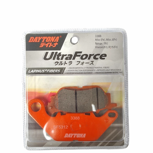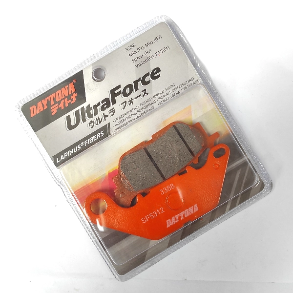 DAYTONA Disc Pad MX Xeon Vixion Nmax Belakang Lapinus Fiber 3388 (Orange). Kampas ini menawarkan kombinasi ideal antara daya cengkeram, suhu kerja stabil, dan ketahanan aus yang tinggi untuk penggunaan jangka panjang.