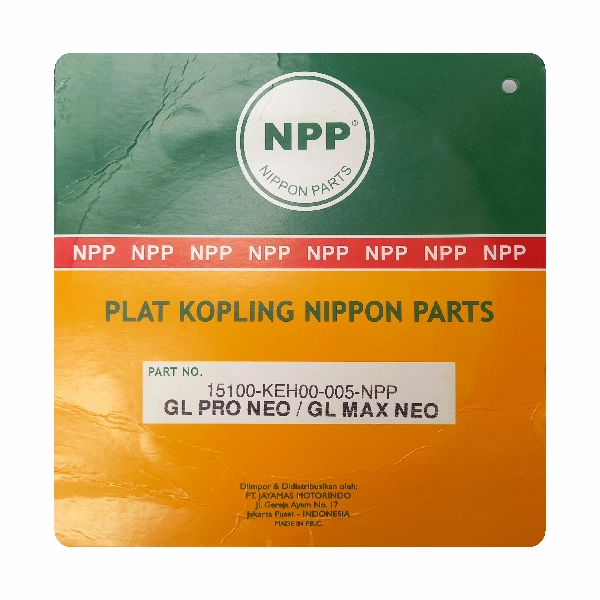 NPP Clutch adalah kampas kopling motor yang berfungsi menyalurkan dan memutus tenaga mesin ke transmisi secara halus dan stabil. Dirancang menggunakan material gesek berkualitas dengan daya cengkeram optimal, kampas kopling ini mampu memberikan perpindahan tenaga yang responsif tanpa selip berlebihan. Cocok digunakan sebagai pengganti kampas kopling standar untuk menjaga performa mesin tetap maksimal.