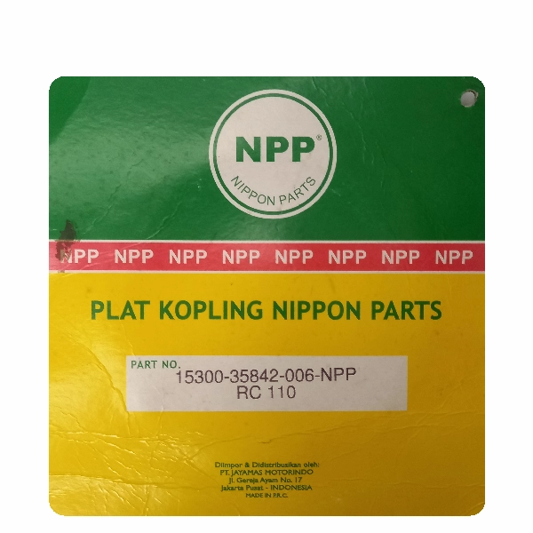 NPP Clutch adalah kampas kopling motor yang berfungsi menyalurkan dan memutus tenaga mesin ke transmisi secara halus dan stabil. Dirancang menggunakan material gesek berkualitas dengan daya cengkeram optimal, kampas kopling ini mampu memberikan perpindahan tenaga yang responsif tanpa selip berlebihan. Cocok digunakan sebagai pengganti kampas kopling standar untuk menjaga performa mesin tetap maksimal.