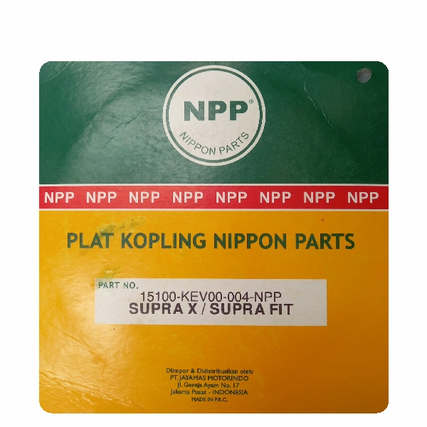 NPP Clutch adalah kampas kopling motor yang berfungsi menyalurkan dan memutus tenaga mesin ke transmisi secara halus dan stabil. Dirancang menggunakan material gesek berkualitas dengan daya cengkeram optimal, kampas kopling ini mampu memberikan perpindahan tenaga yang responsif tanpa selip berlebihan. Cocok digunakan sebagai pengganti kampas kopling standar untuk menjaga performa mesin tetap maksimal.