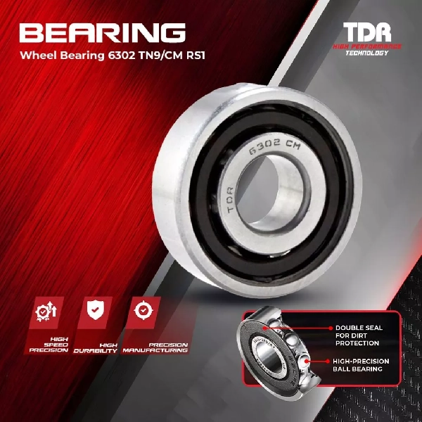 TDR Laher Bearing 6302. Didukung dengan grease khusus tahan panas serta desain low-friction, bearing ini memberikan putaran lebih halus, minim suara, dan performa stabil. Sangat cocok untuk motor harian, motor kerja, touring, maupun motor dengan performa modifikasi.