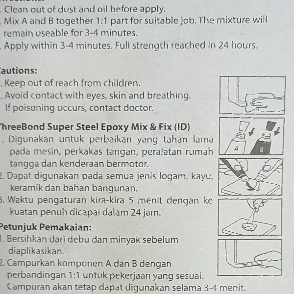THREEBOND Epoxy Lem Besi Campur 35ml. Sehingga cocok digunakan untuk reparasi maupun perakitan.